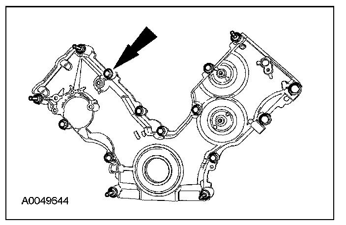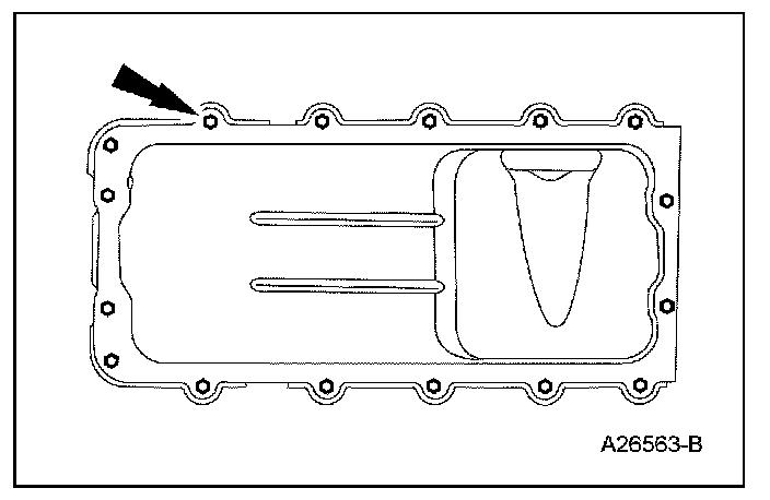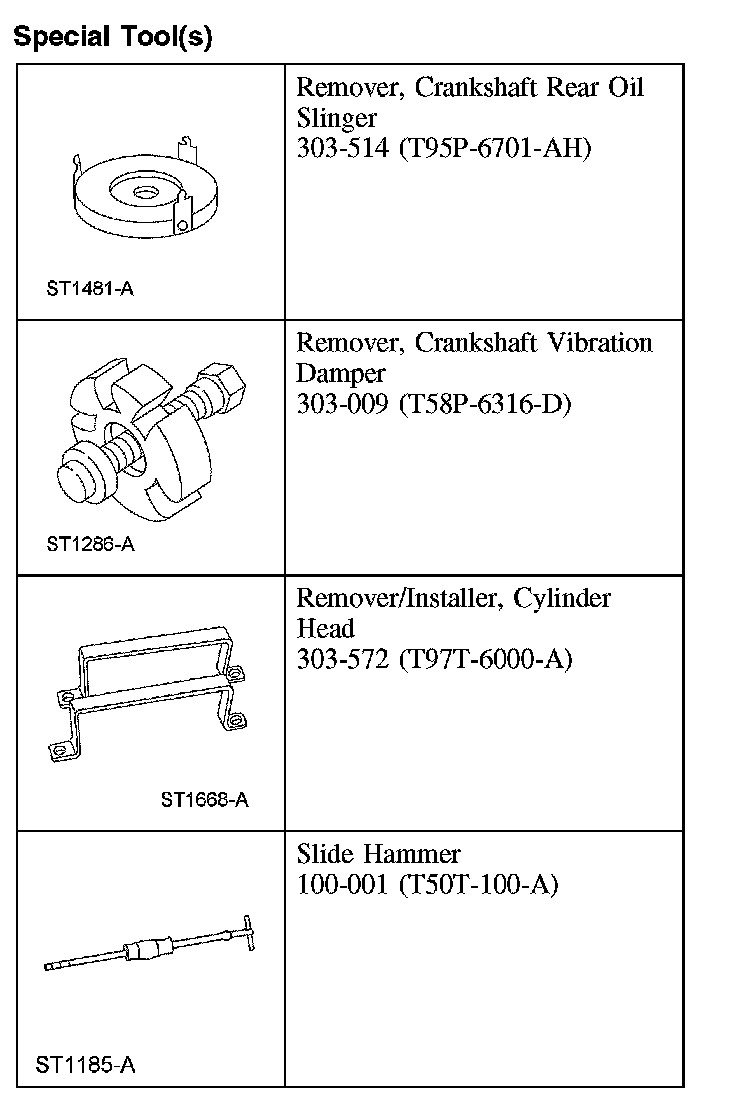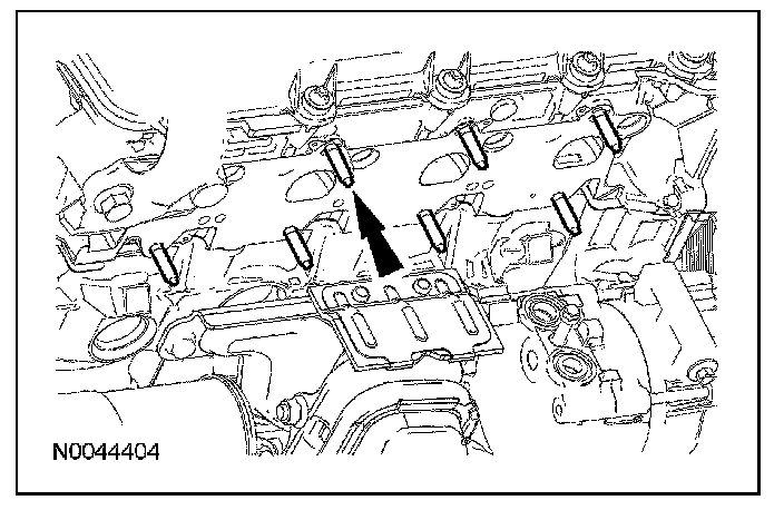 CAUTION: During engine repair procedures, cleanliness is extremely important. Any foreign material, including any material created while cleaning gasket surfaces, that enters the oil passages, coolant passages or the oil pan can cause engine failure.