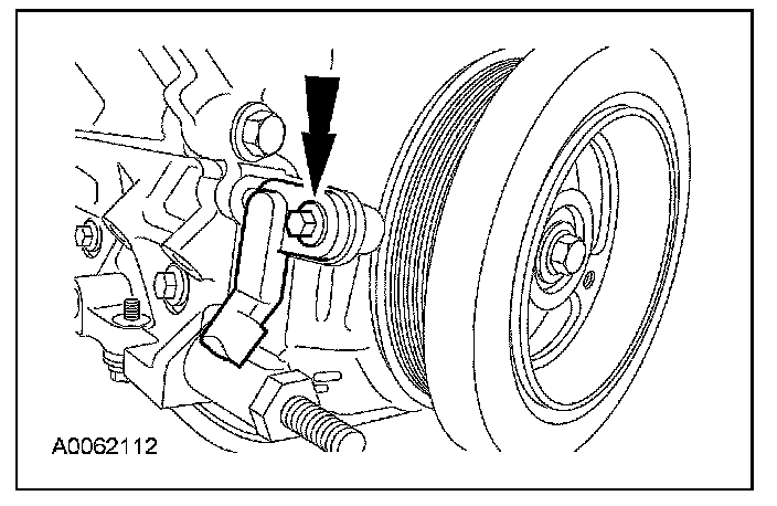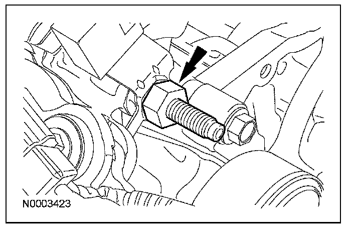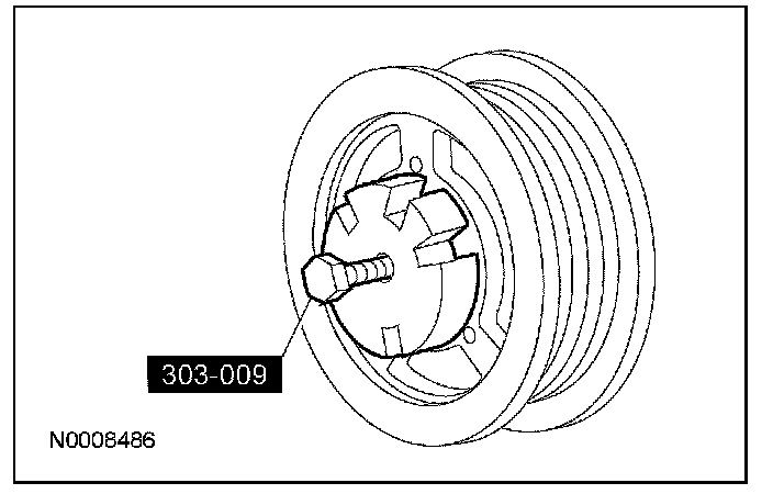 38. Remove and discard the crankshaft pulley bolt. Using the special tool, remove the crankshaft pulley.