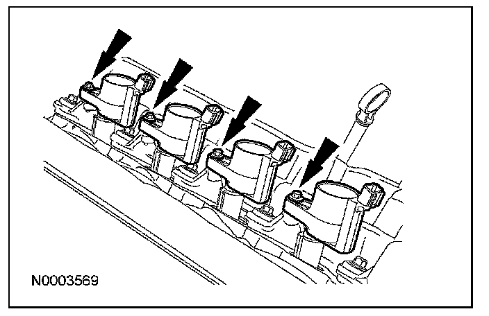 ^ Remove the ignition coil, using a twisting motion while pulling up on the ignition coil.
