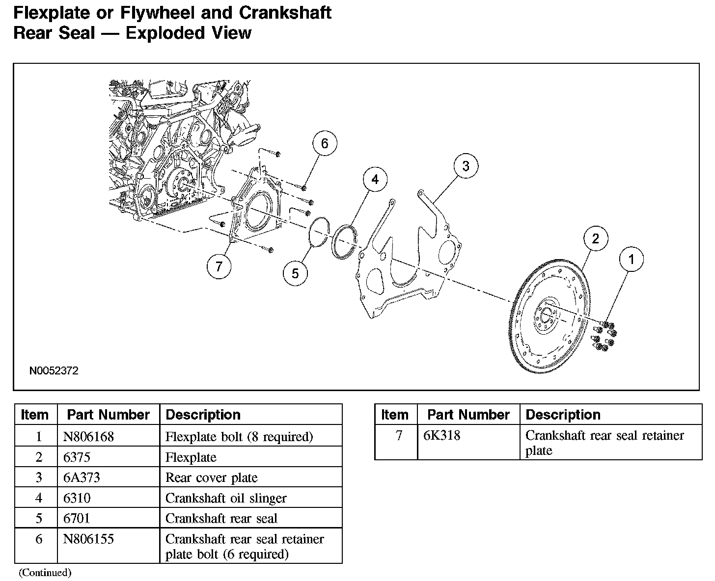 FlexplateFlexplate or Flywheel and Crankshaft Rear Seal - Exploded View: