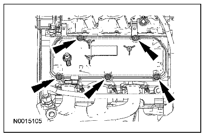 63. NOTE: If the lower intake manifold is not secured within 4 minutes, the sealant must be removed and the sealing area cleaned. To clean the sealing area, use silicone gasket remover and metal surface prep. Follow the directions on the packaging. Failure to follow this procedure can cause future oil leakage.
