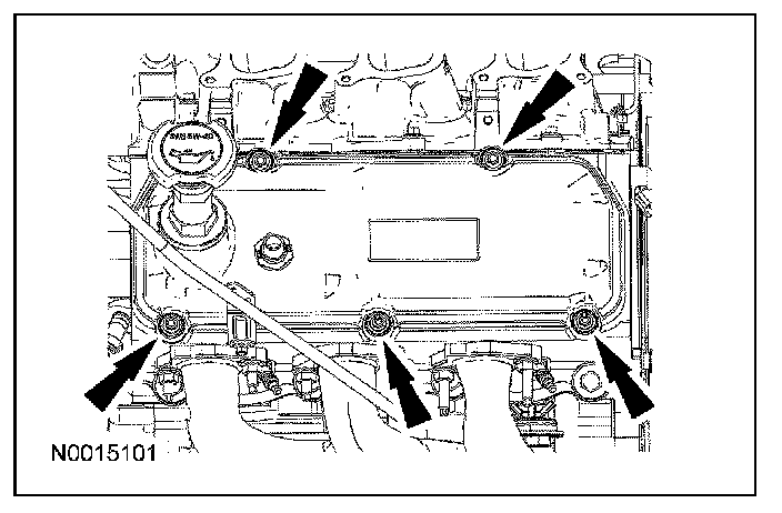 60. Install a new valve cover gasket. Position the RH valve cover and install the bolts and stud bolts.