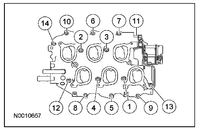 Tighten the 14 bolts in the sequence shown in 2 stages.