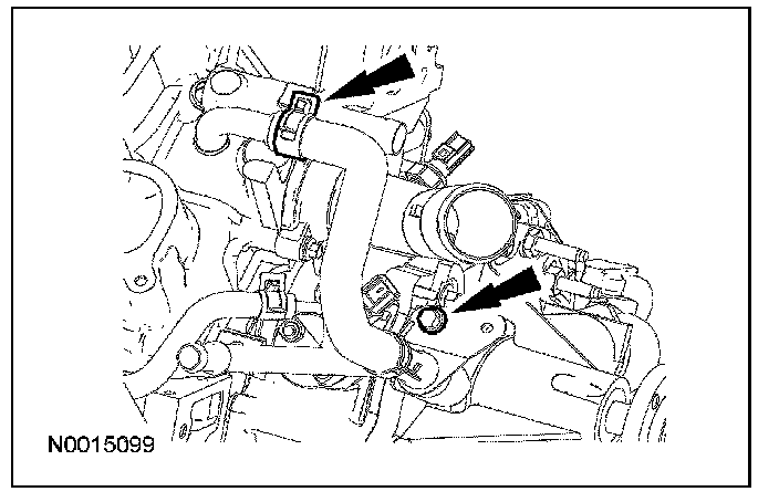 Position the heater outlet tube and install the nut. Connect the bypass hose.