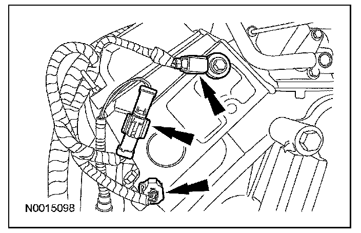 68. Connect and attach the heated oxygen sensor (HO2S) electrical connector. Connect the knock sensor (KS) and the cylinder head temperature (CHT) sensor electrical connectors.
