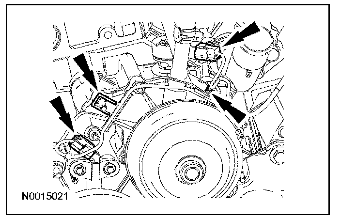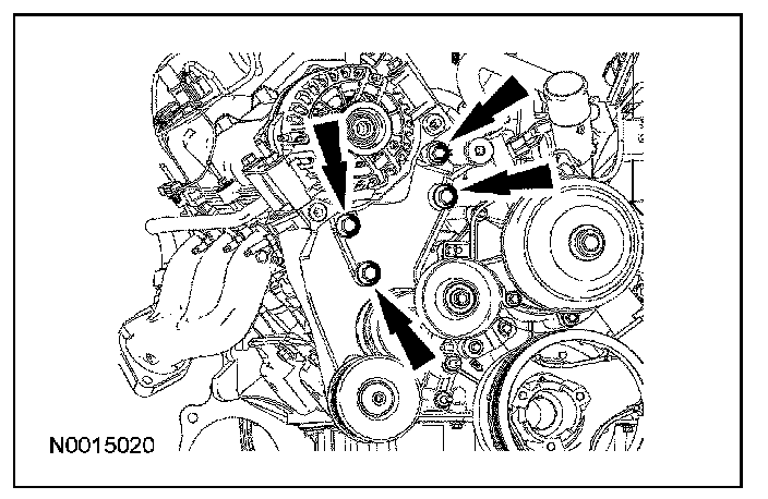 74. Position the generator mounting bracket, the generator, the accessory drive belt tensioner and the idler pulley as an assembly and install the 4 bolts.