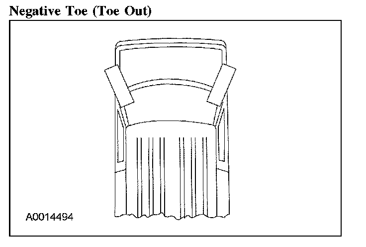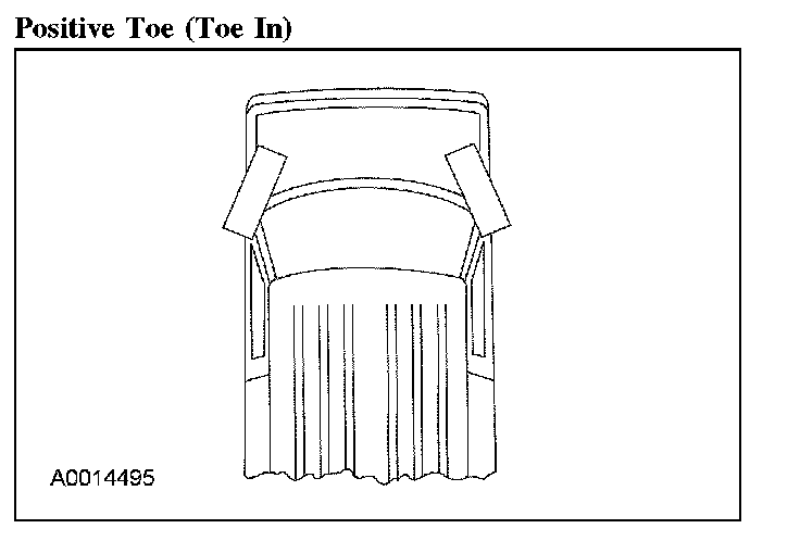 When the wheels are turned in toward the front of the vehicle, the toe is positive (+) (toe-in). When the wheels are turned out toward the front of the vehicle, the toe is negative (-) (toe-out). This is measured in degrees, from side-to-side, and totaled.