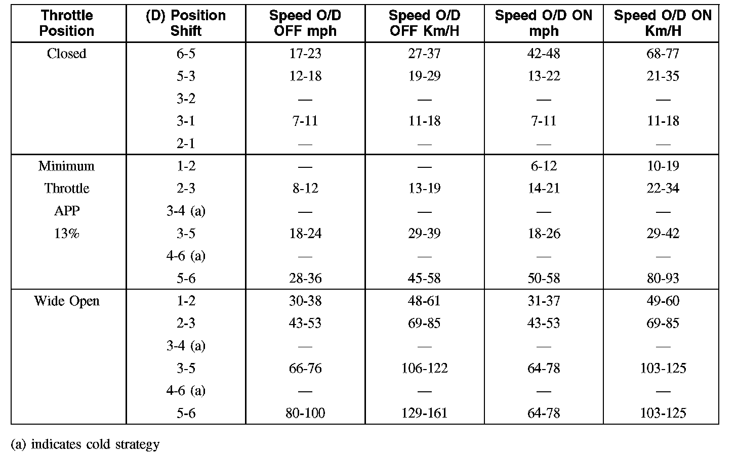 All shift speeds are nominal and will vary with calibration, model, axle ratio and tire size.
