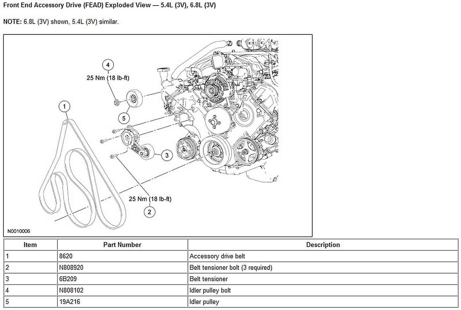 Front End Accessory Drive (FEAD) Exploded View - 5.4L (3V), 6.8L (3V)