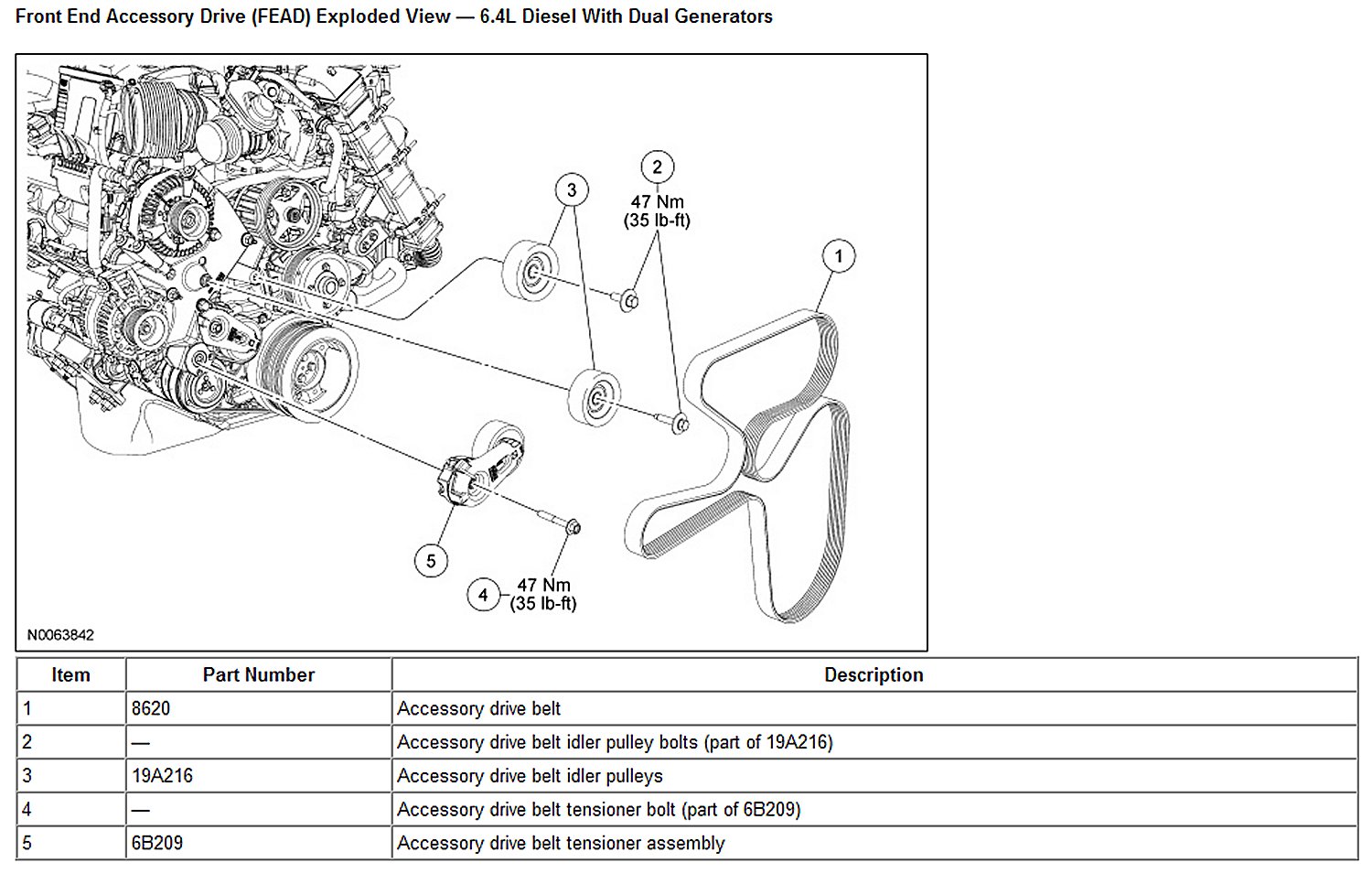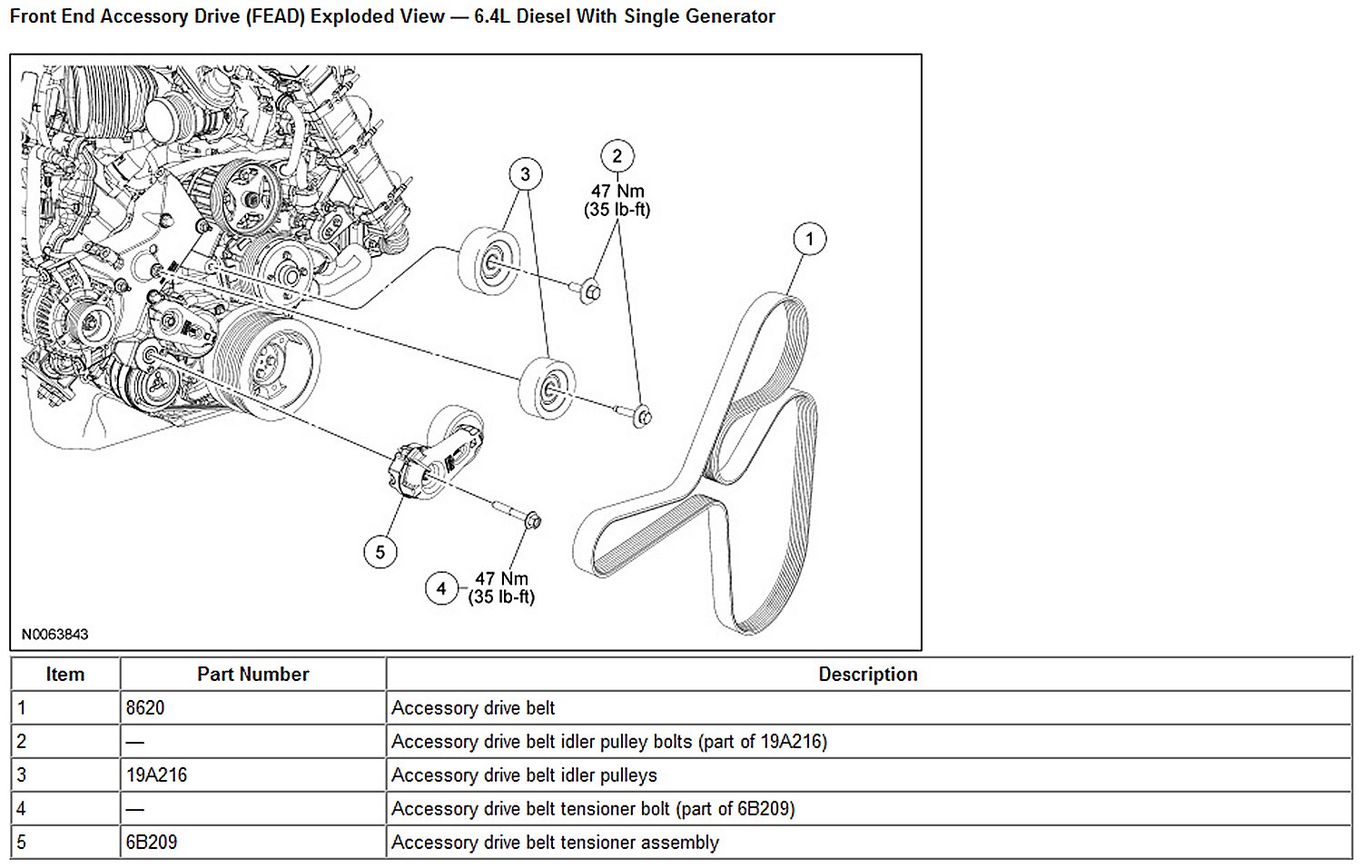 Front End Accessory Drive (FEAD) Exploded View - 6.4L Diesel With Single Generator