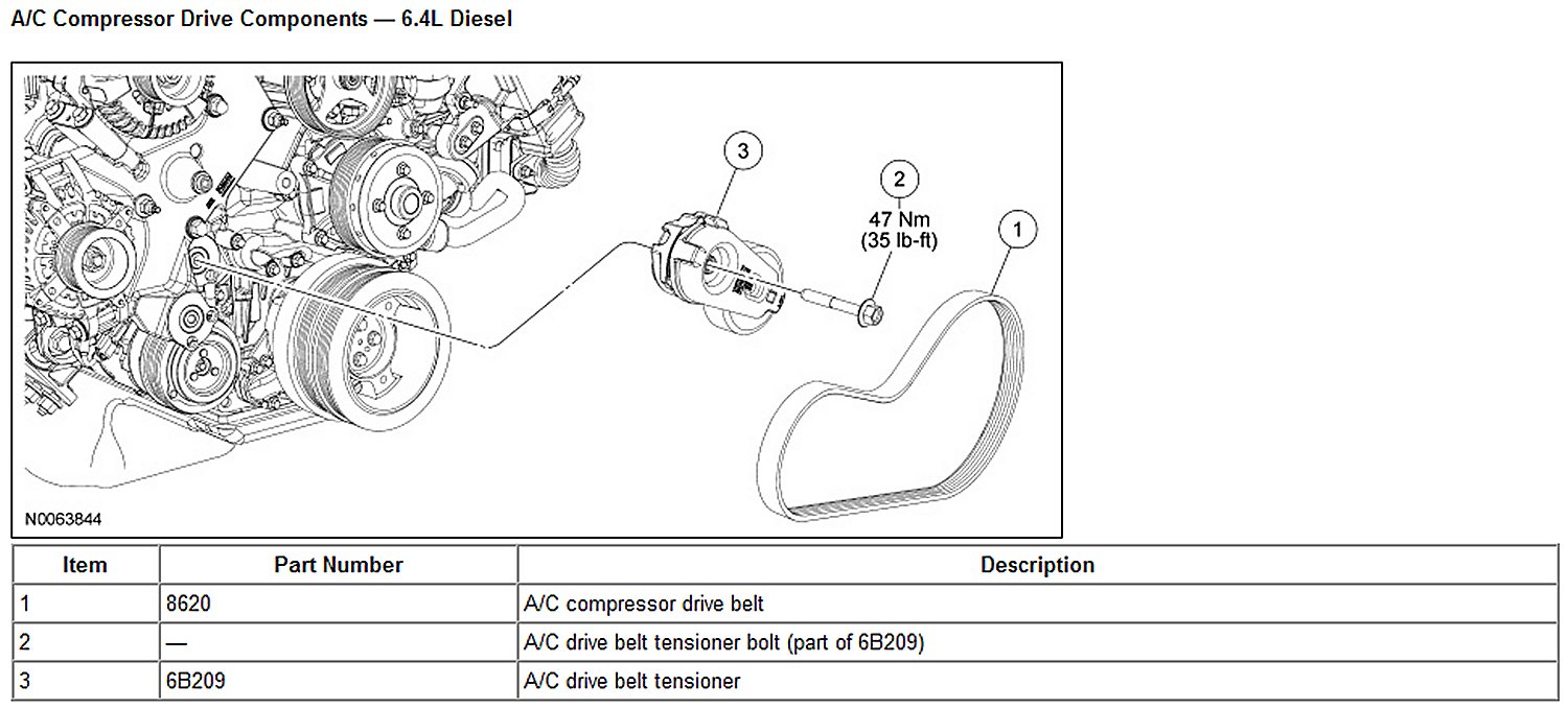 A/C Compressor Drive Components - 6.4L Diesel