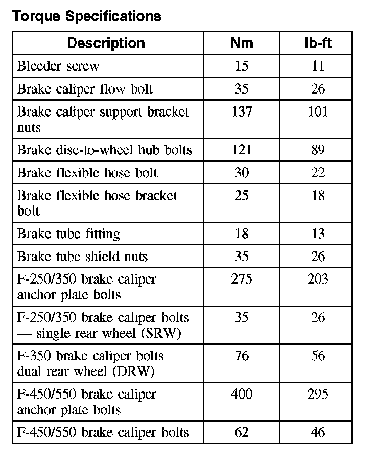 Torque Specifications, Rear