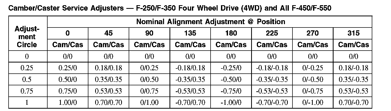 Camber/Caster Service Adjusters - F-250/F-350 Four Wheel Drive (4WD) and All F-450/F-550: