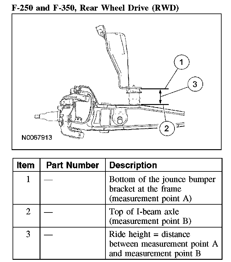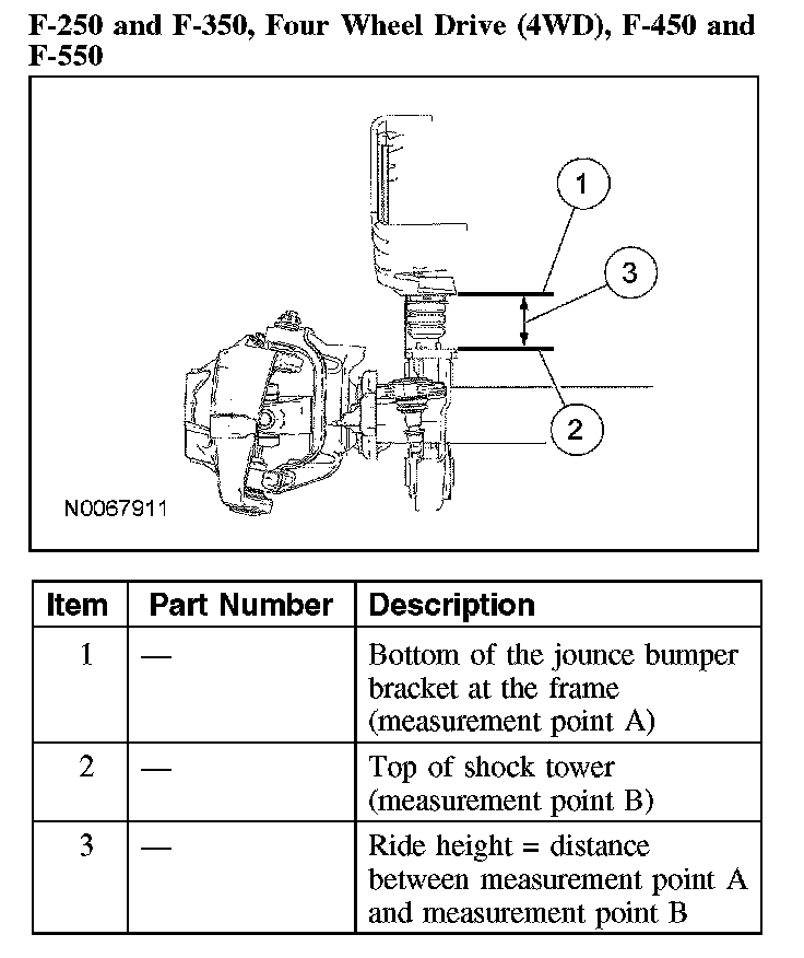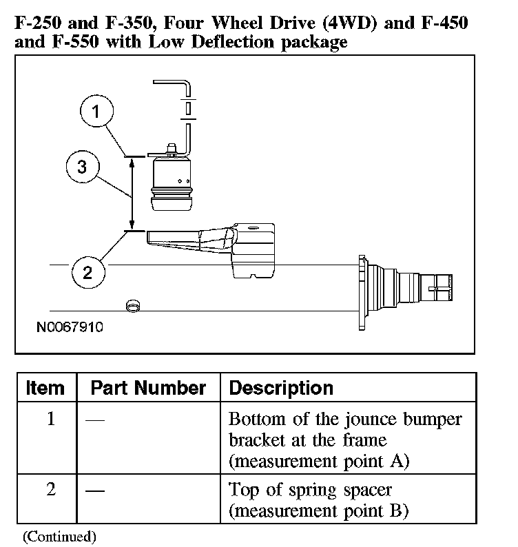 F-250 and F-350, Four Wheel Drive (4WD) and F-450 and F-550 with Low Deflection package (Part 1):