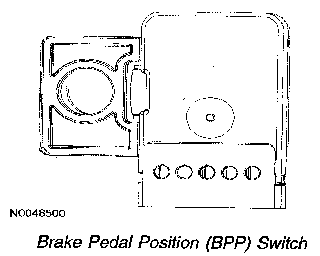 The BPP switch signals the PCM with a battery positive voltage (B+) signal whenever the brake pedal is applied. The signal informs the PCM to disengage the torque converter clutch, speed control, and auxiliary idle control (if equipped).