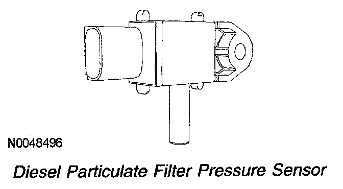 The diesel particulate filter pressure sensor is an input to the PCM and is used to measure the pressure before the diesel particulate filter. The sensor is a differential-type sensor that is referenced to atmospheric pressure. At key ON, engine OFF the diesel particulate filter pressure sensor pressure value reads 0 kPa (0 psi). The range of the sensor is 0-80 kPa (0-11.6 psi).