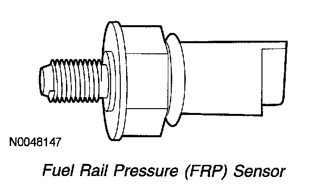 The FRP sensor is a diaphragm strain gauge device in which resistance changes with pressure. The electrical resistance of a strain gauge increases as pressure increases, and the resistance decreases as the pressure decreases. The varying resistance affects the voltage drop across the sensor terminals and provides electrical signals to the PCM corresponding to pressure. The FRP sensor is located on the fuel rail and its primary function is to provide a feedback signal to indicate the fuel rail pressure so that the PCM can command the correct injector timing, pulse width, and the correct injection control pressure for proper fuel delivery at all speed and load conditions. The FRP sensor along with the fuel pressure control valve form a closed loop fuel pressure control system.