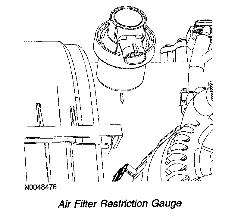 An electronic air filter restriction gauge is located in the air cleaner housing. The sensor is hardwired to the instrument cluster. When the air flow in the intake air system reaches the maximum allowable restriction limit, a switch in the air filter restriction gauge closes and a message is displayed in the message center of the instrument cluster.