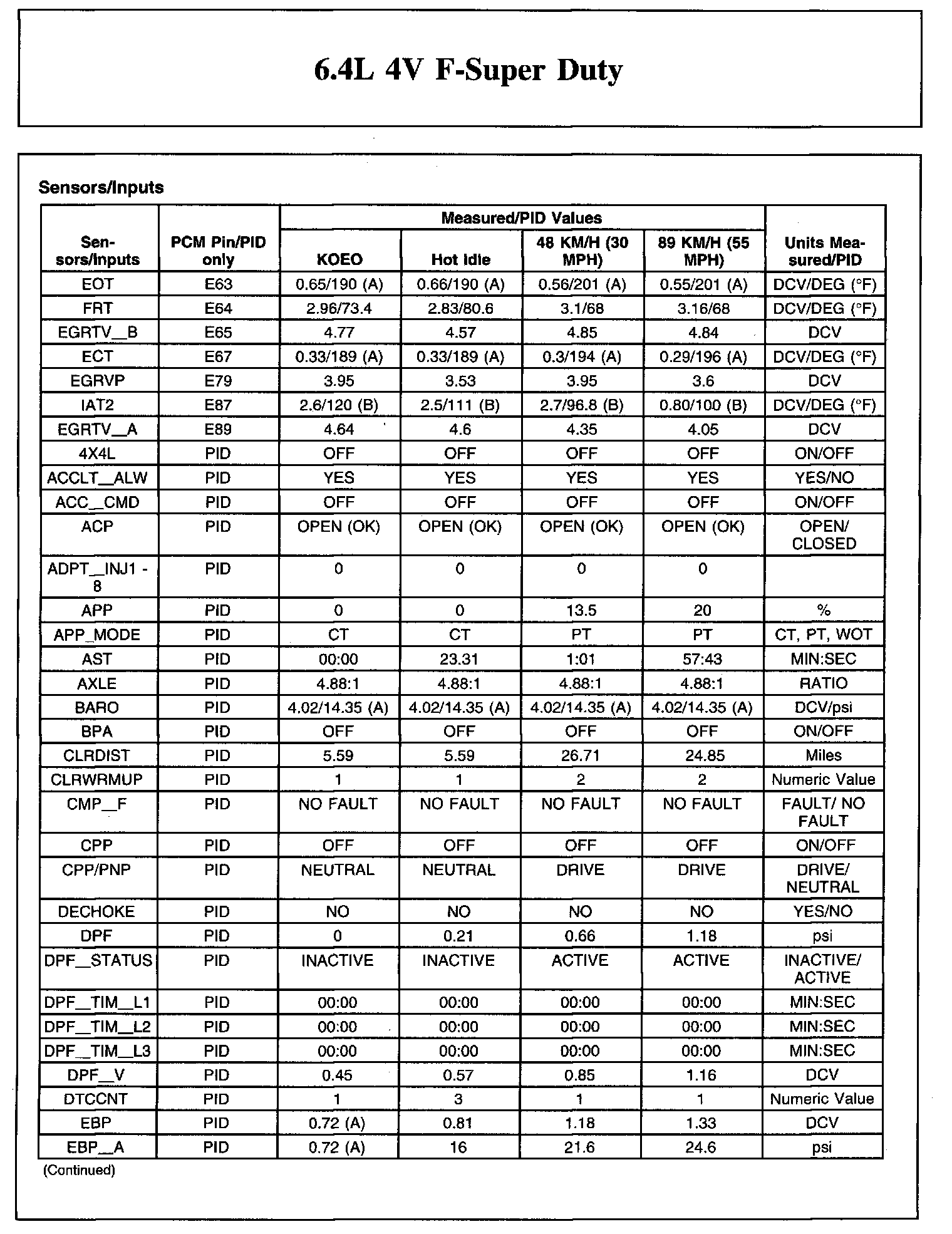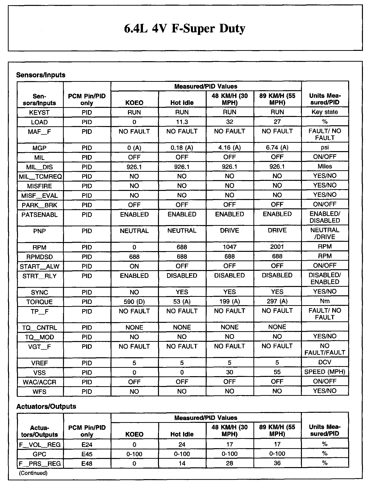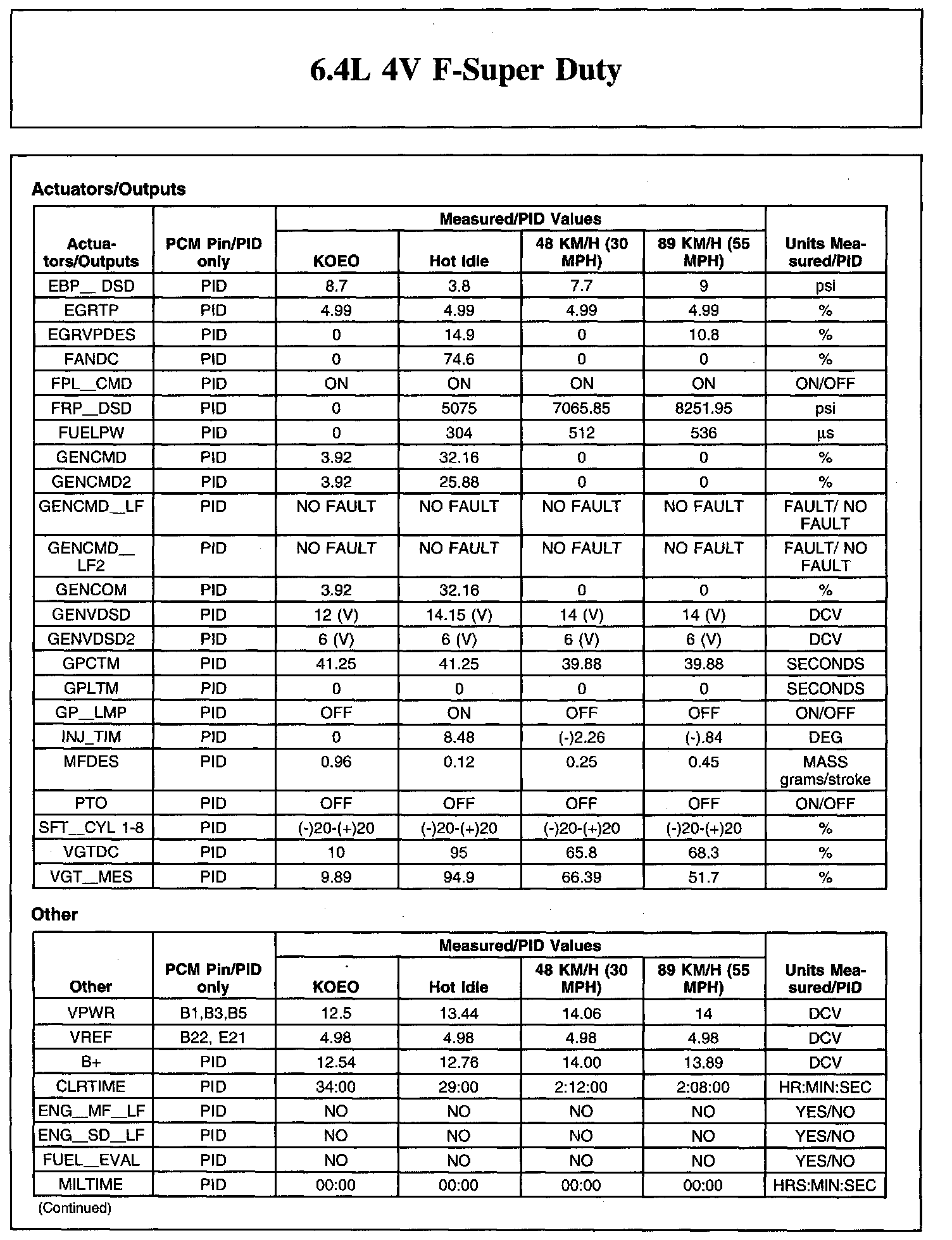 TYPICAL DIAGNOSTIC REFERENCE VALUES6.4L 4V F-Super Duty (Part 1):