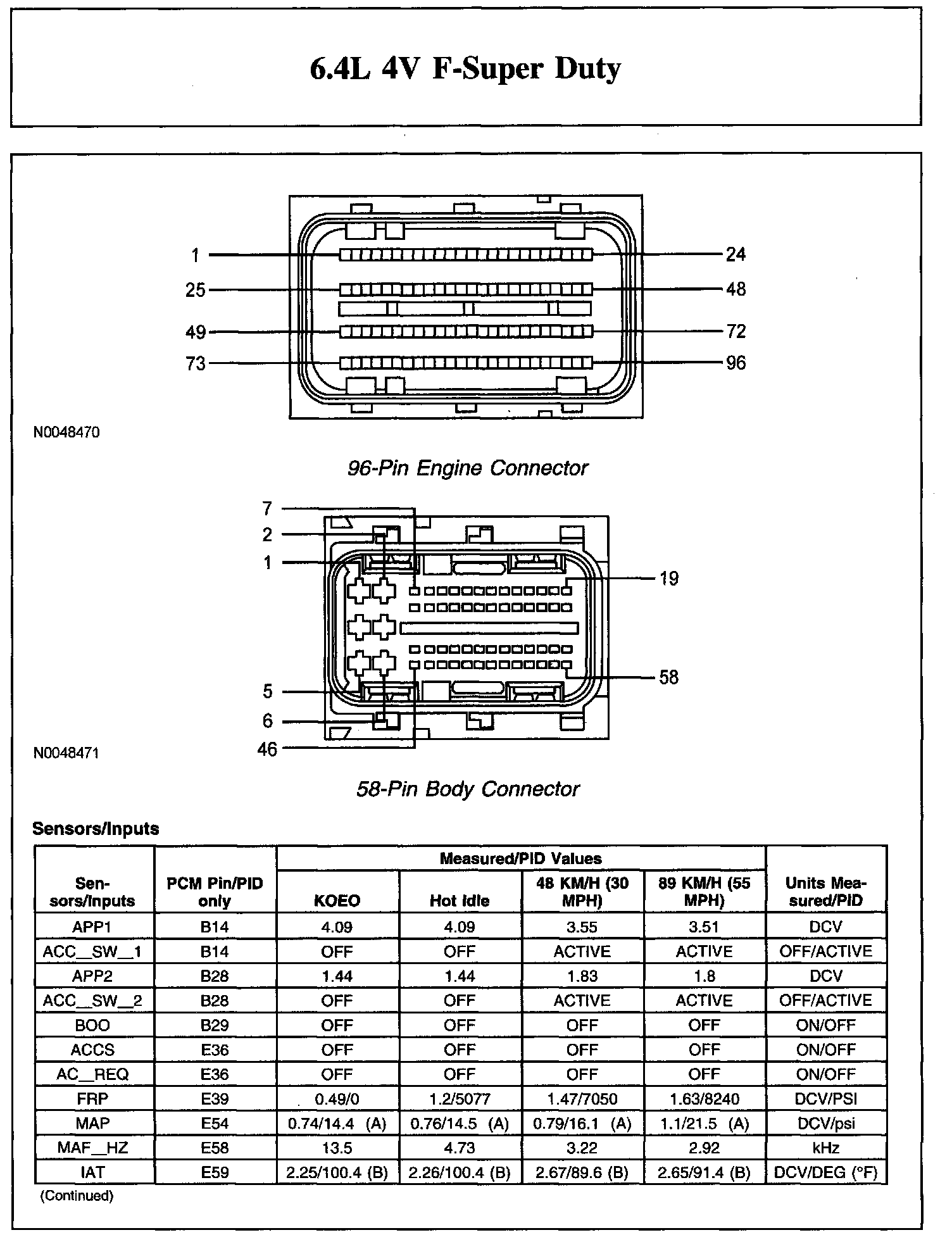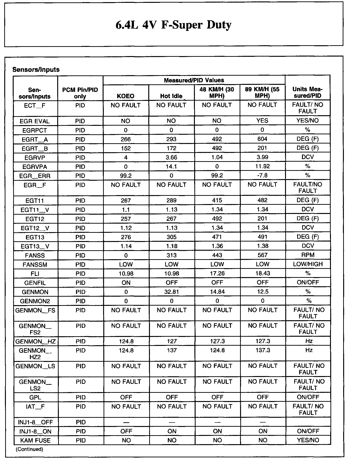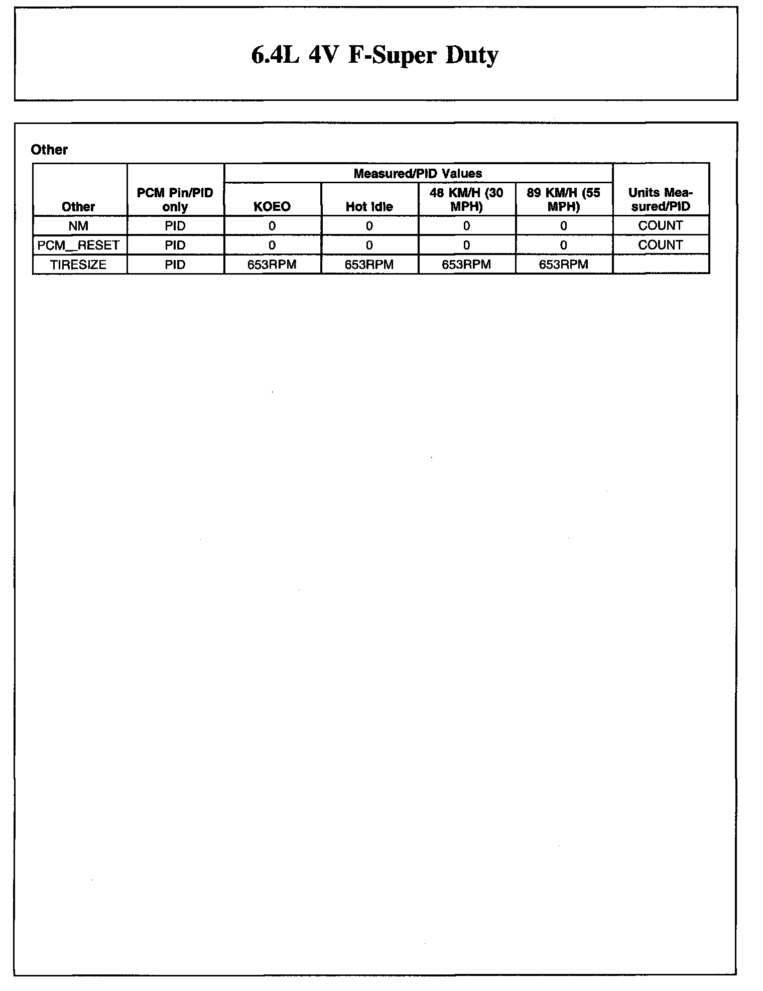 TYPICAL DIAGNOSTIC REFERENCE VALUES6.4L 4V F-Super Duty (Part 1):