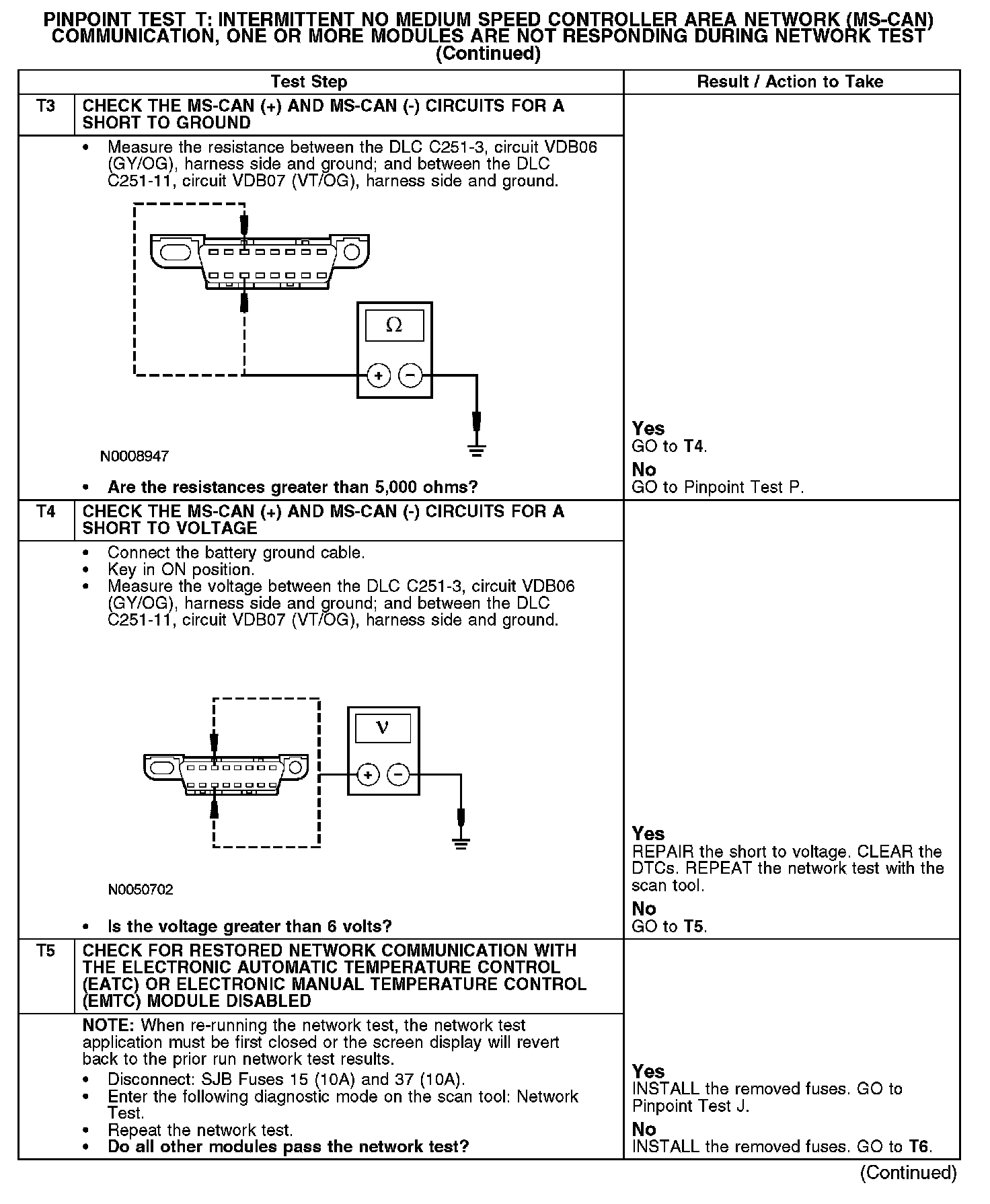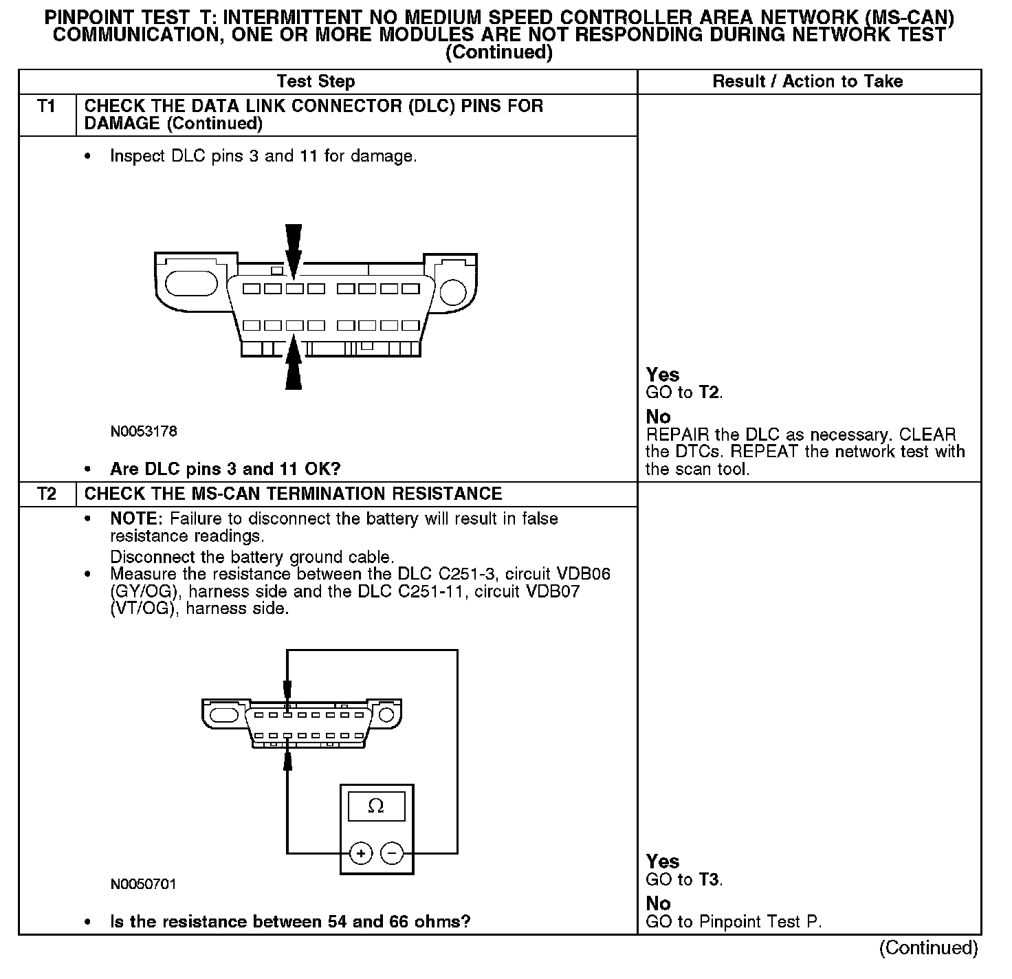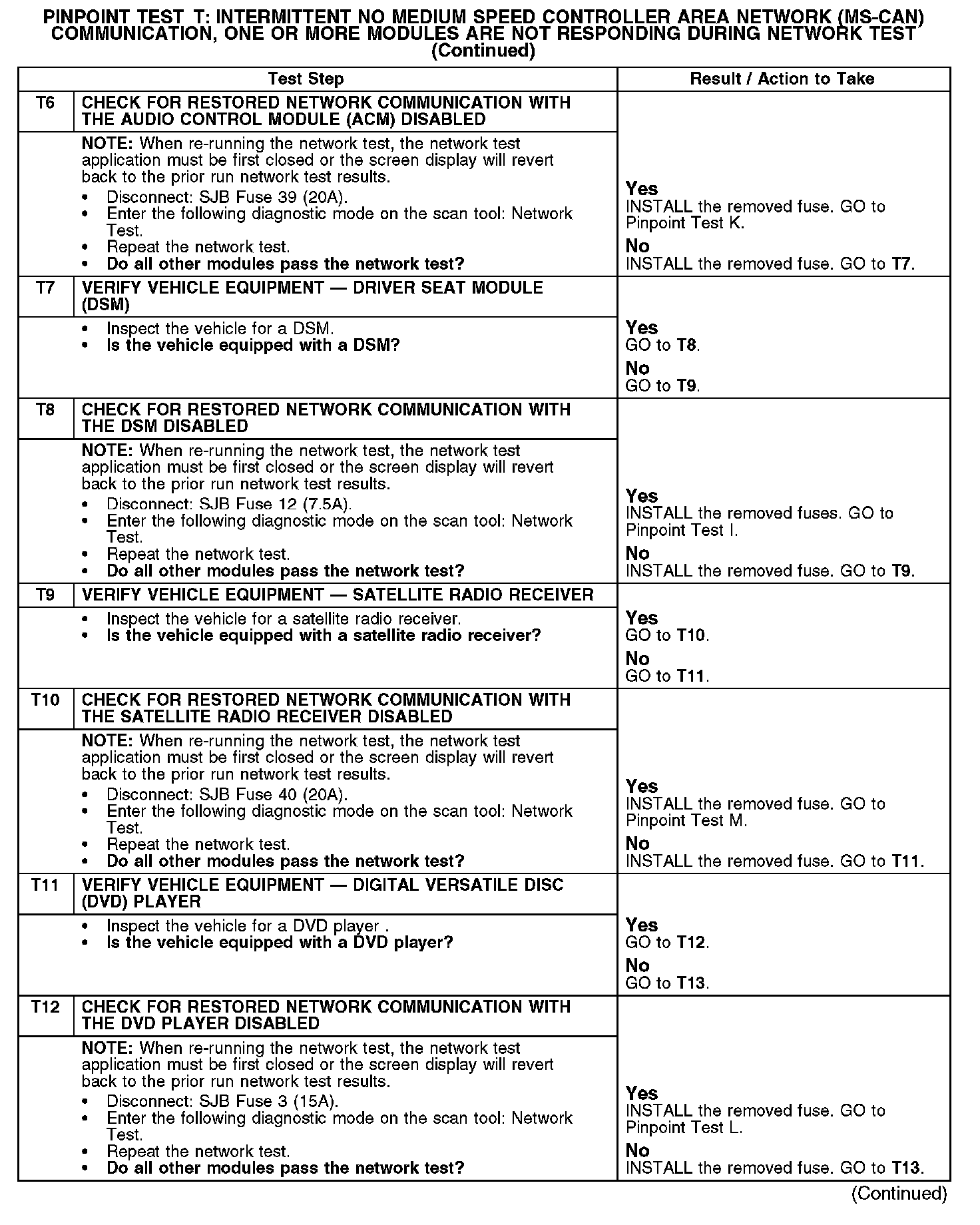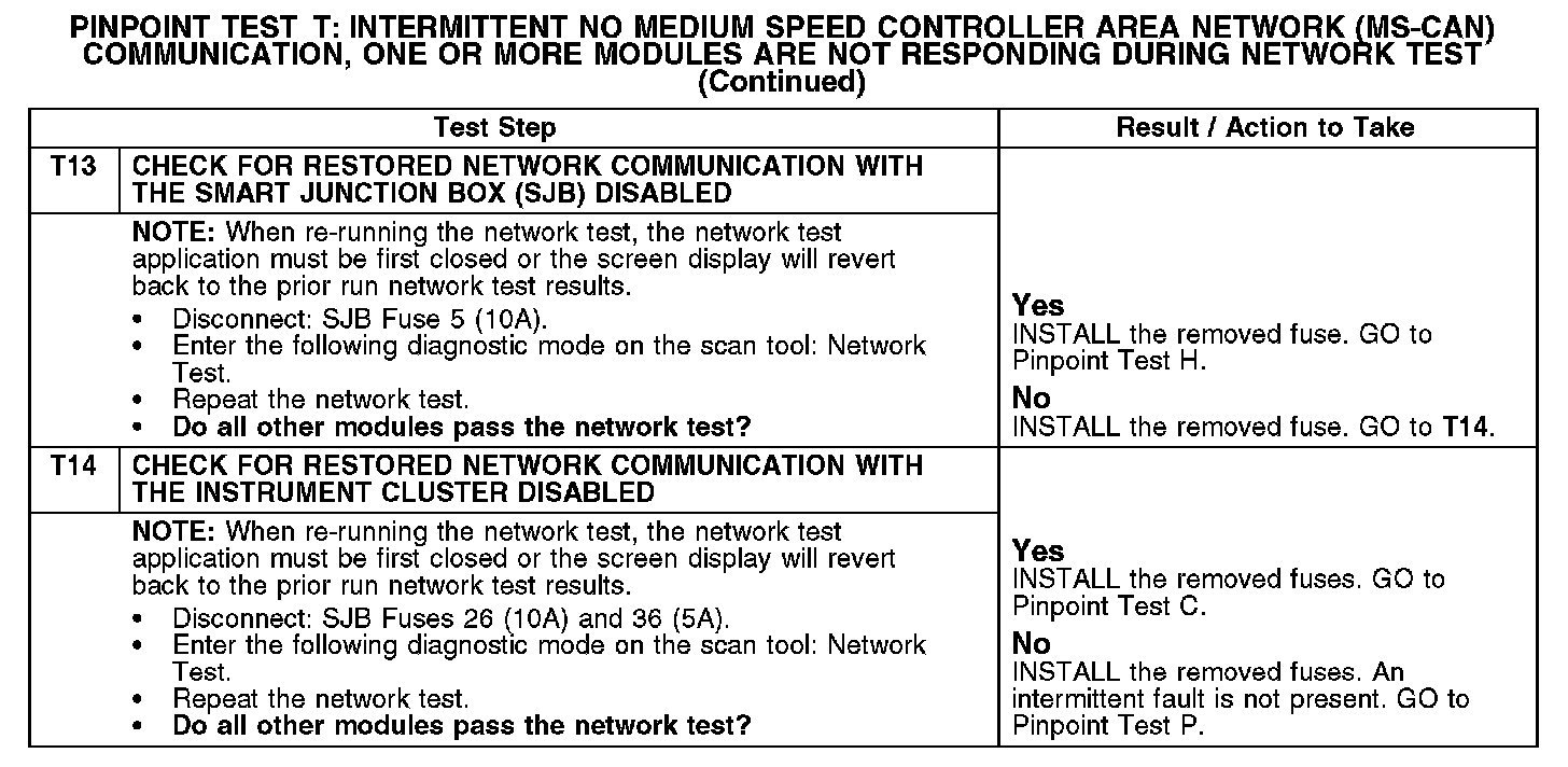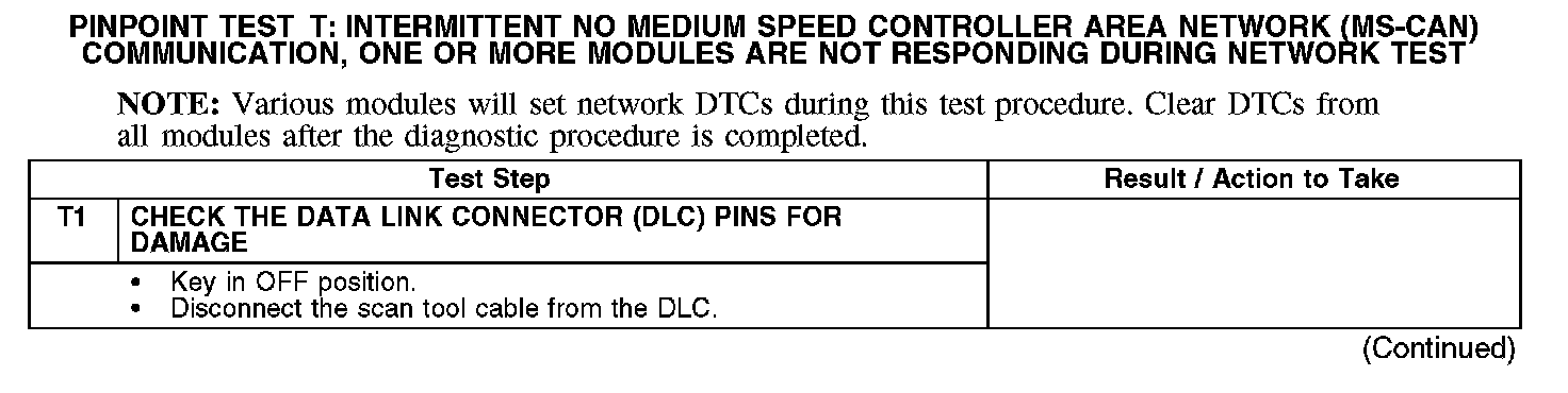 Test T: Intermittent No Medium Speed Controller Area Network (MS-CAN) Communication, One Or More Modules Are Not Responding Dur