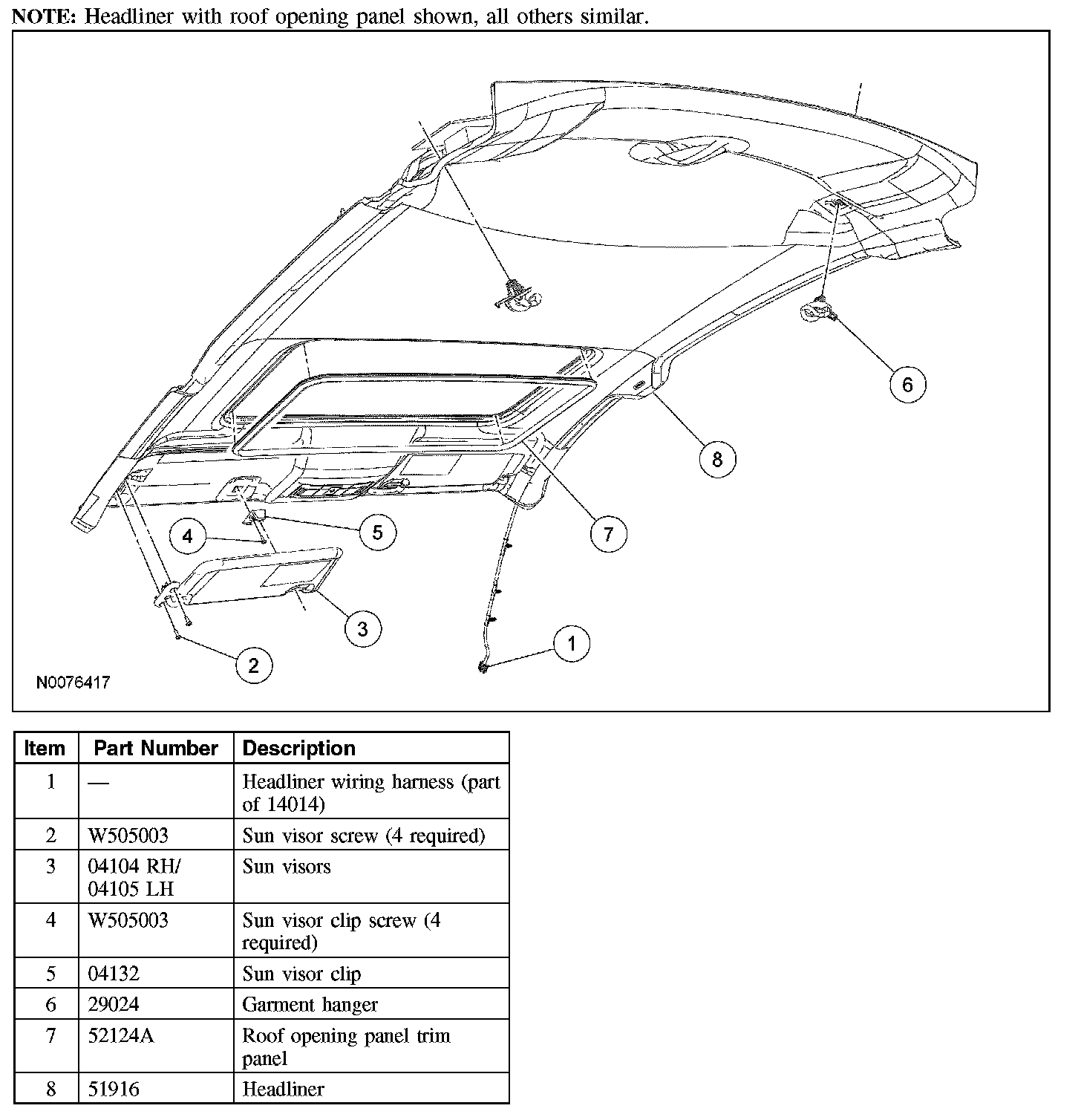 14. CAUTION: An assistant is required when removing the headliner from the vehicle to avoid damage to the headliner.