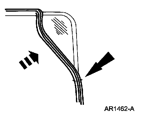 1. Place a new weatherstrip into position on the glass assembly, with the splice (seam) on the passenger side.