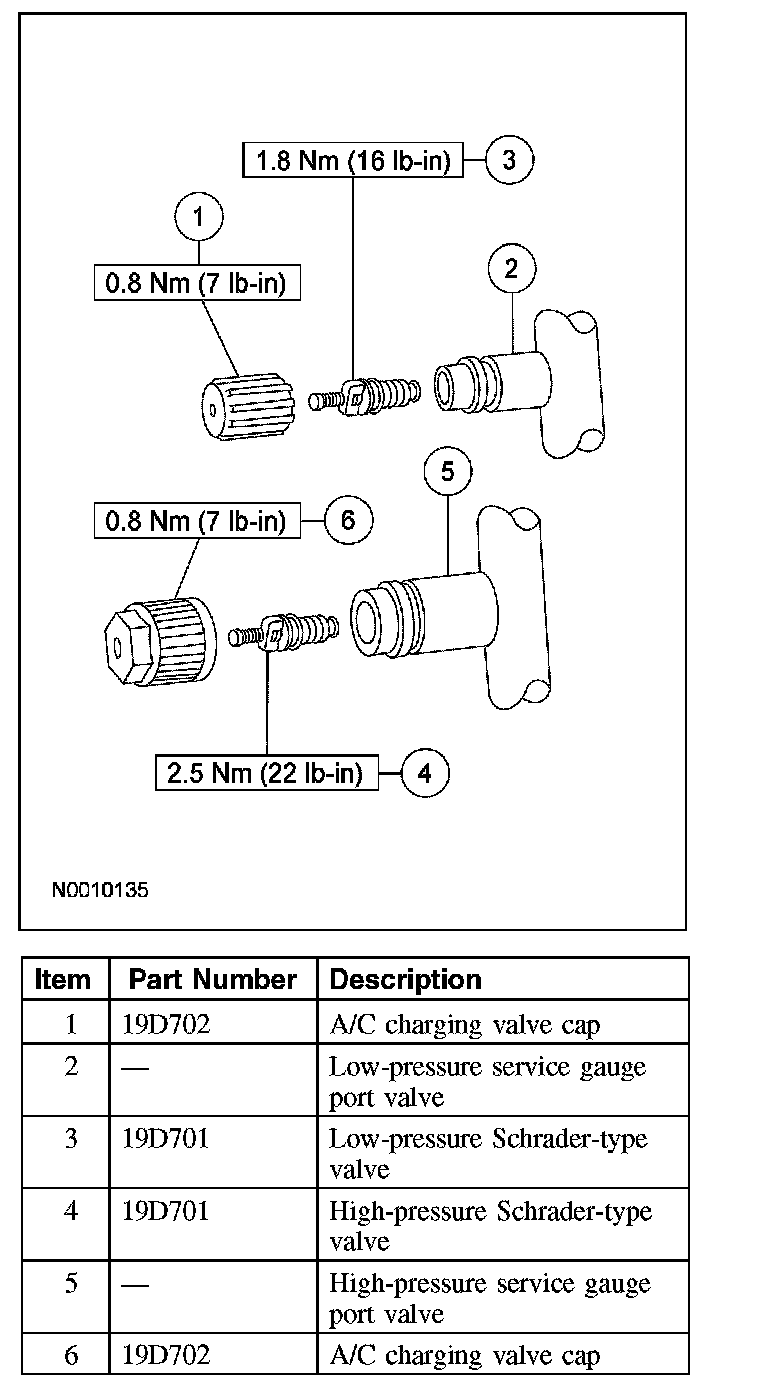 - The service gauge port valve caps each include an O-ring seal which is used as a primary seal in the refrigerant system to prevent leakage through the Schrader-type valves from reaching the atmosphere. The service gauge port valve cap O-ring seals should be checked when checking the refrigerant system for leaks and a new cap should be installed if needed. Always install and tighten the A/C service gauge port valve caps to the correct torque after they are removed.