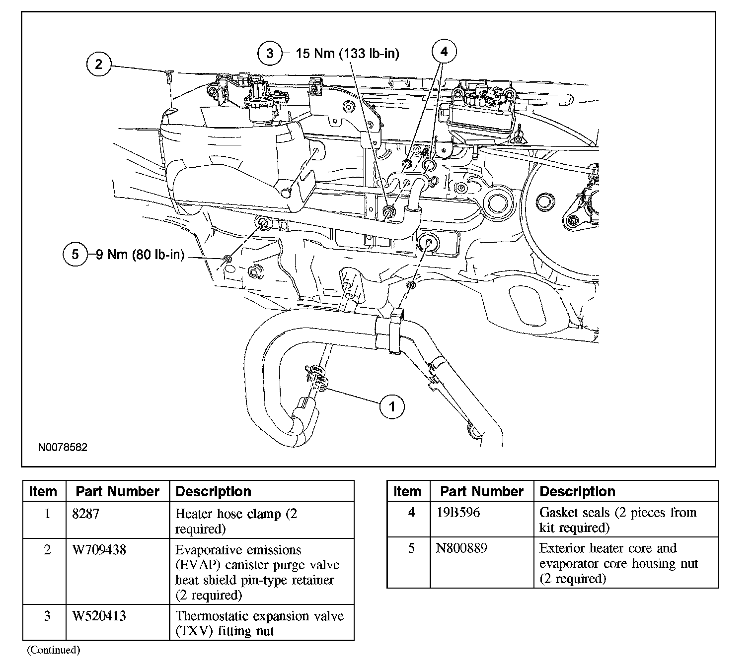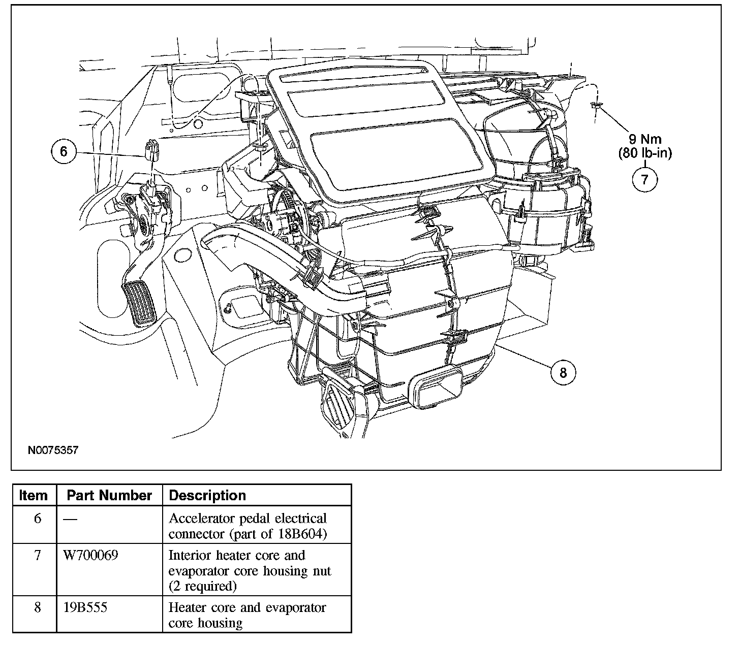 7. Remove the 2 interior heater core and evaporator core housing nuts.