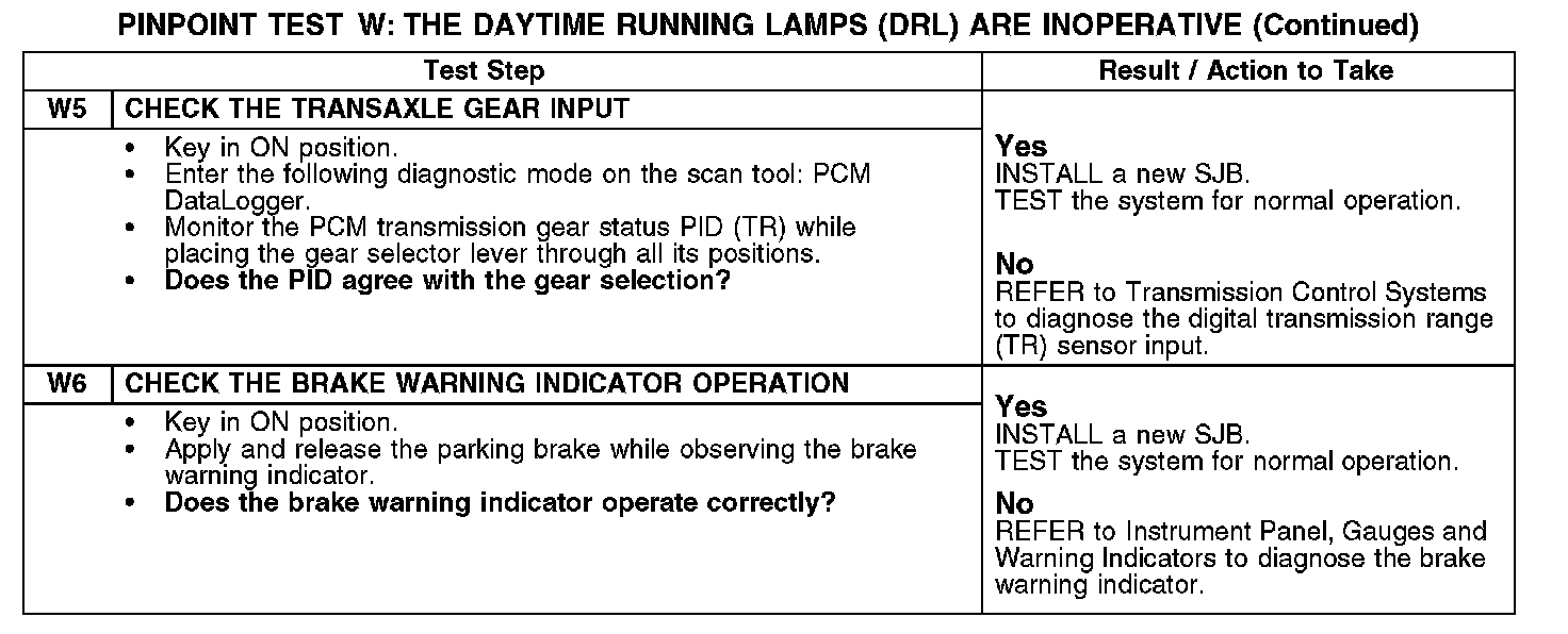 PINPOINT TEST W: THE DAYTIME RUNNING LAMPS (DRL) ARE INOPERATIVENormal Operation