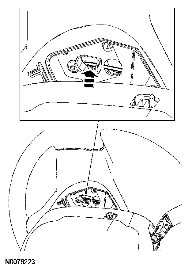 2. NOTE: Turn the steering wheel to gain access to each of the 3 driver air bag module attachment pin bores.