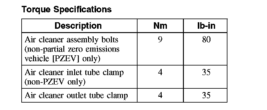 Torque Specifications: