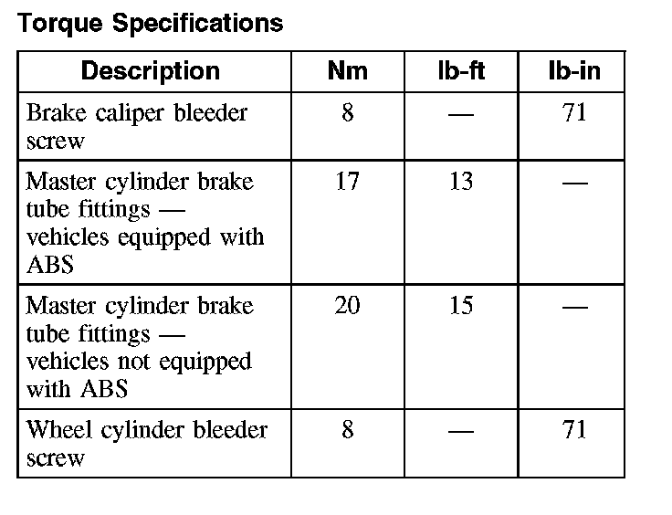 Torque Specifications: