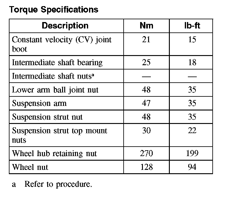 Torque Specifications: