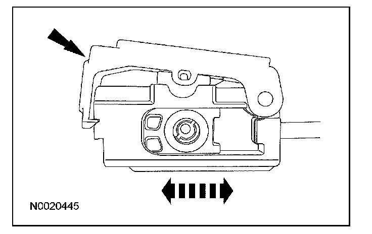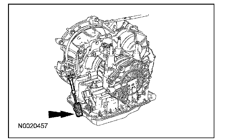 6. NOTE: When installing the selector lever cable, make sure that the selector lever cable locking tabs are locked in place and the selector lever cable end is snapped onto the ball stud. Press the selector lever cable into the selector lever cable bracket and listen for the selector lever cable to click in place. Pull back on the selector lever cable to make sure that it is locked into the selector lever cable bracket. Also make sure that the selector lever cable end is correctly installed onto the ball stud. Pull back on the selector lever cable end to make sure that the selector lever cable end is correctly installed.
