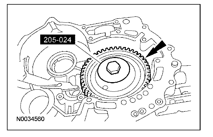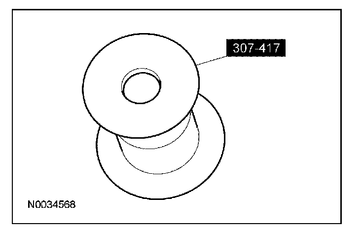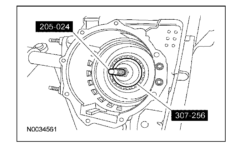 30. Using the special tool, install the correct transfer shaft shim and bearing cup into the converter housing.