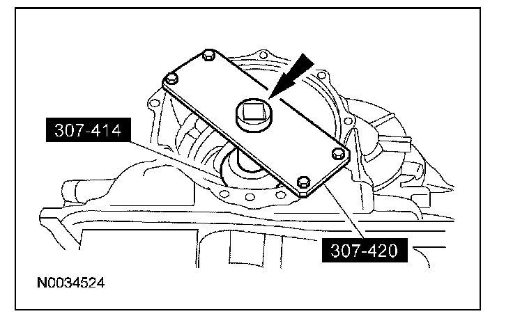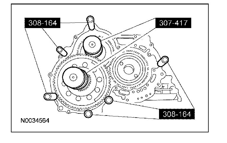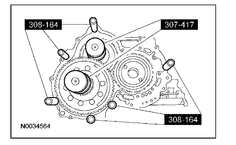 24. CAUTION: Do not use the bolts from special service kit 308-164, they will not work. Use only the bolts from the special service kit 308-161 or damage to the transaxle case threads can occur.