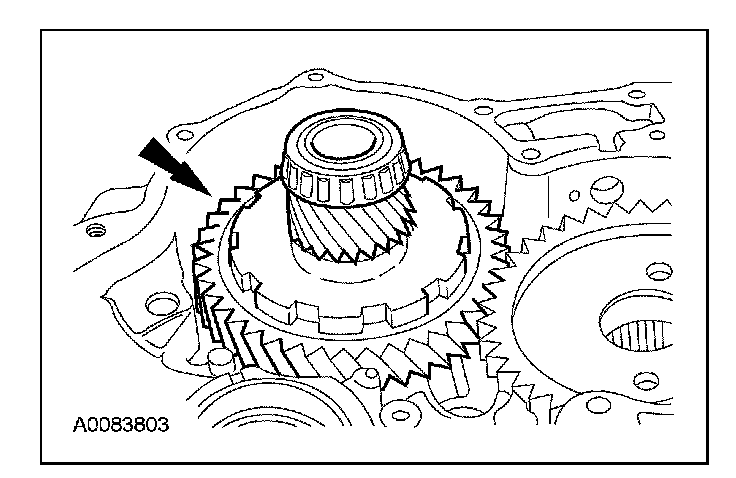 5. CAUTION: Hold the final drive input gear while installing the final drive input gear bearing to prevent it from falling out of the transaxle case or damage to the input gear can occur.