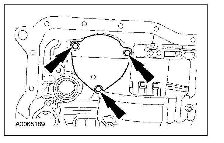 Remove the 3 intermediate/overdrive piston servo cover bolts and the servo cover.