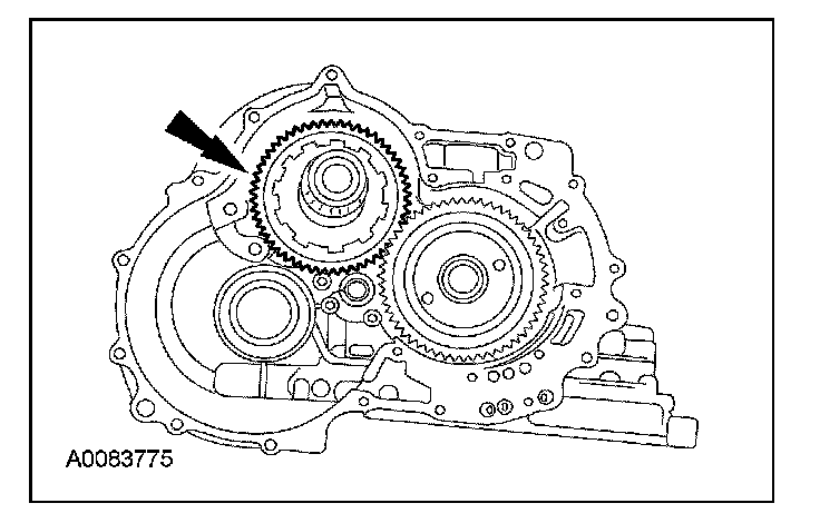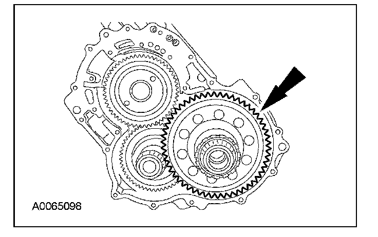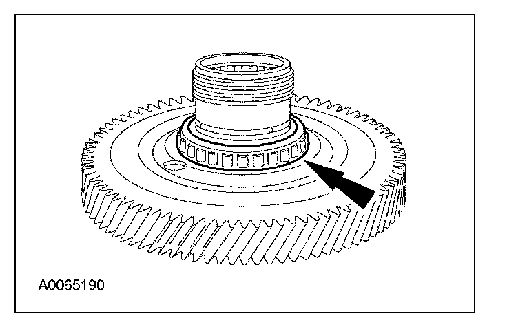 64. CAUTION: Hold the final drive input gear while removing the bearing to prevent it from falling out of the transaxle case or damage to the input gear can occur.
