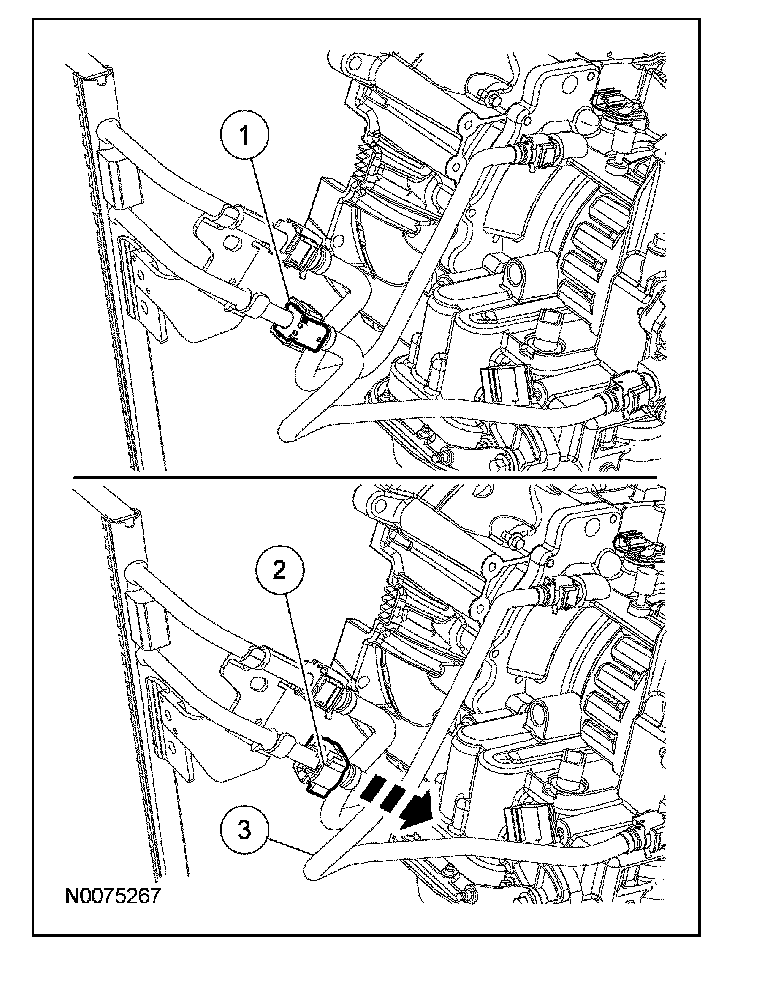 3 Remove the transmission fluid cooler tube from the transmission fluid cooler and position the transmission fluid cooler tube aside.