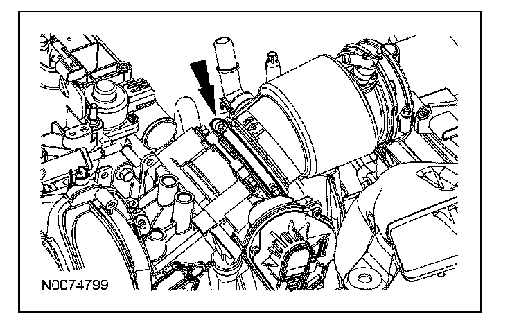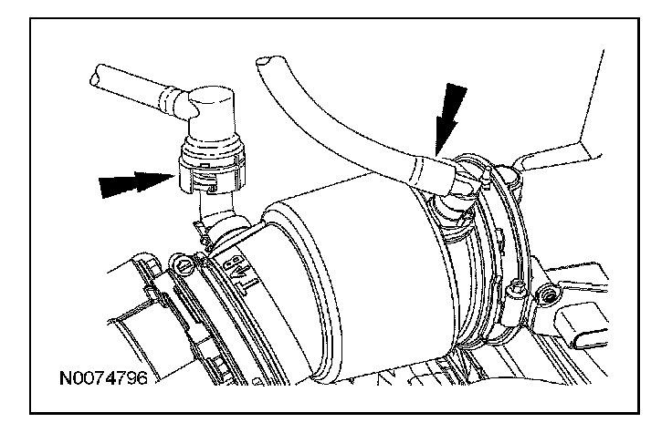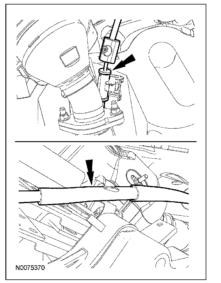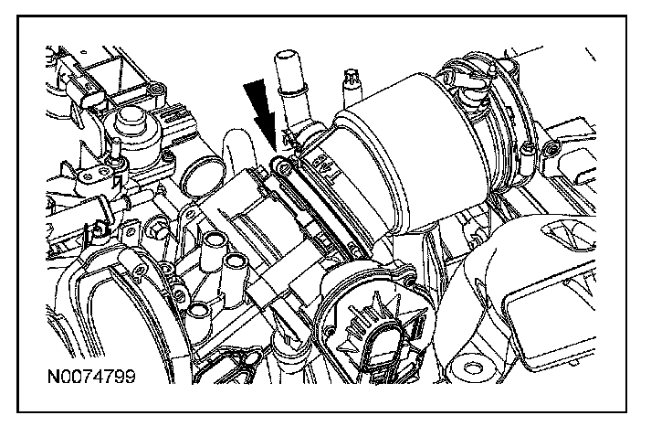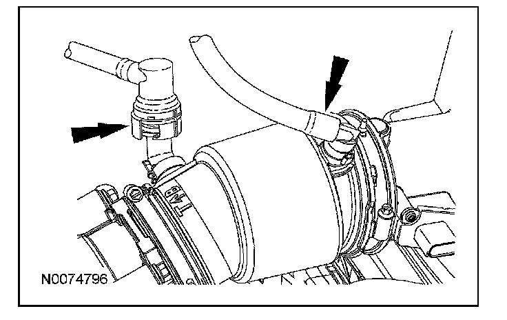 Disconnect the crankcase ventilation hose and disconnect the brake booster vacuum hose.