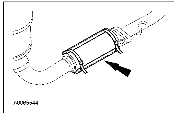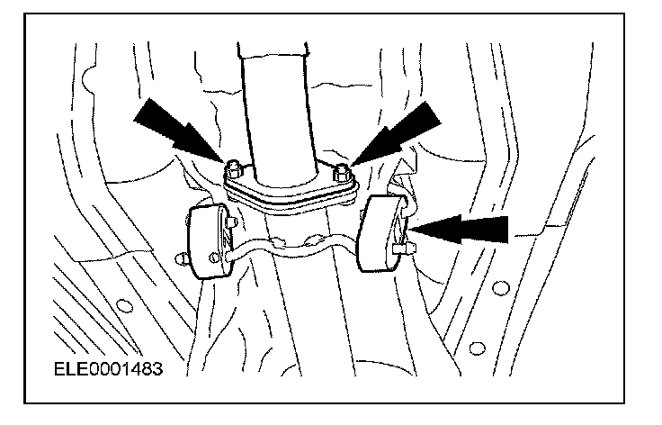 11. Disconnect the center exhaust hanger and support the exhaust with wire.