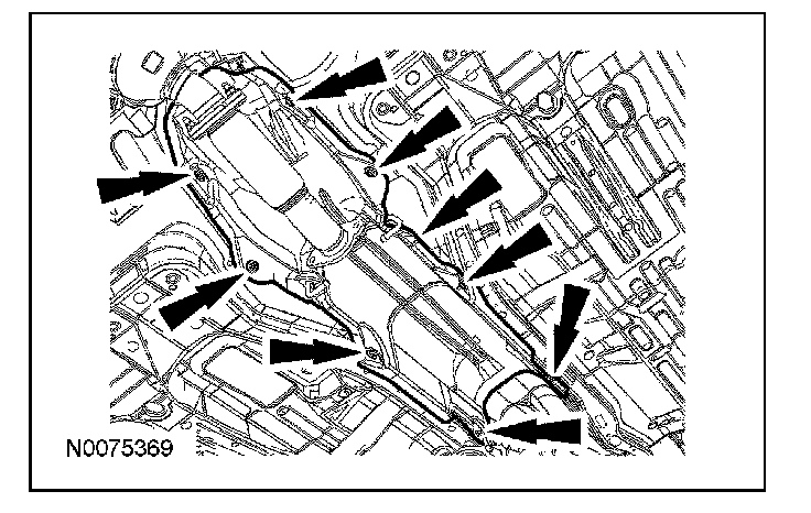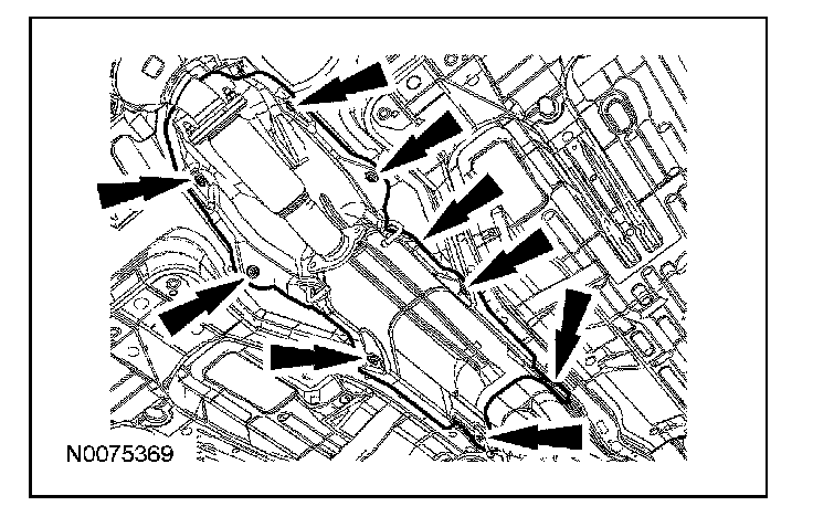 12. Remove the 8 fasteners and the exhaust heat shield.