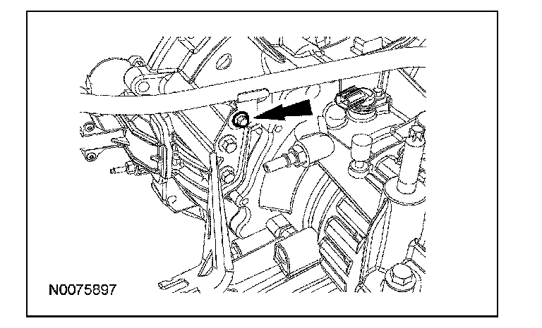 15. Remove the transmission fluid filler tube bolt from the selector lever cable bracket.