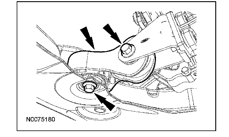 2. Install the roll restrictor-to-transaxle bracket bolt and tighten both of the roll restrictor bolts.