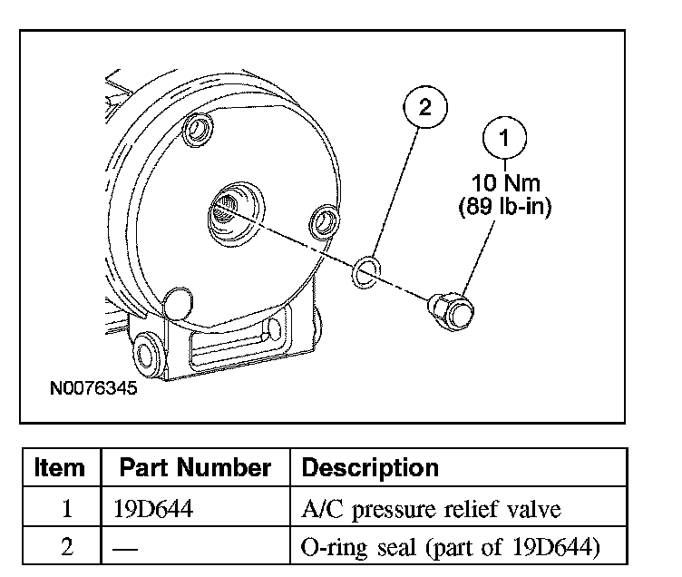 3. Remove the A/C pressure relief valve and O-ring seal.