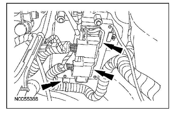 ^ Detach the electrical harness retainer from the pressure line bracket.