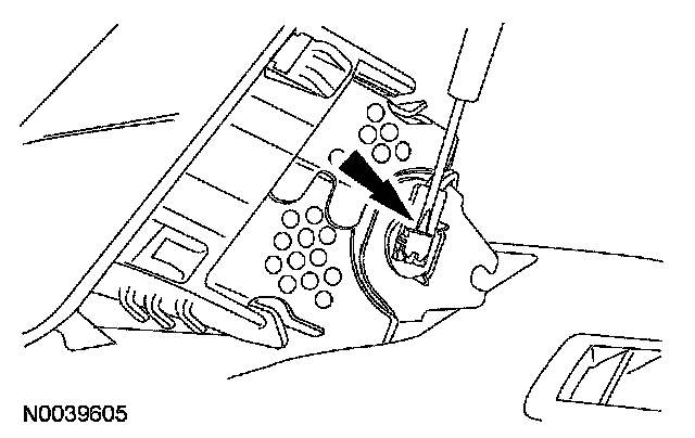 Through the glove compartment opening, release the deployment door clips from the instrument panel and then lift the passenger air bag module out of the instrument panel.
