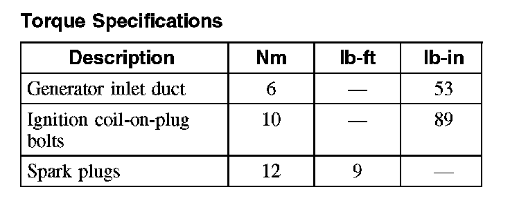 Torque Specifications: